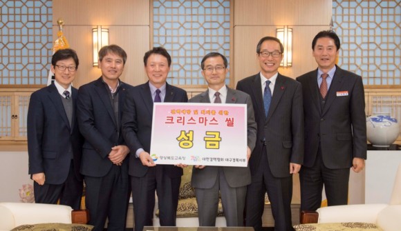 |  | | | ⓒ (주)영남도민일보 | | [영남도민일보] 권기한 기자 = 경상북도교육청(교육감 이영우)은 2016. 12. 1.(목) 도교육청에서 크리스마스 씰 증정식을 갖고 대한결핵협회 대구경북지부(지회장 전영준)에 결핵예방 및 퇴치 사업 후원을 위한 성금을 전달했다.