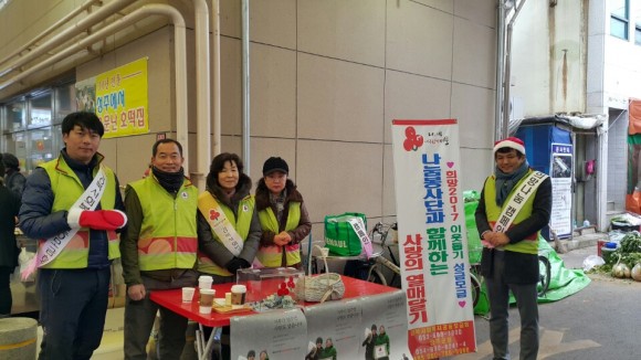 2016년 12월 1일 성주군 자원봉사자대회 및 12월 7일 성주 전통시장 내에서 거리캠페인 활동에 나눔봉사단 회원 20여명이 참여, 시장을 보러온 주민을 대상으로 사랑의 열매 달아주기와 성금모금 홍보 등으로 희망 2017 나눔캠페인의 모금 확산에 최선을 노력을 다하였다.