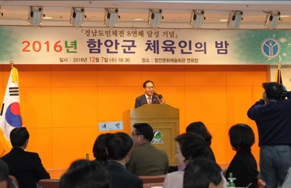 함안군체육회 회장인 차 군수는 “올 한해 체육발전에 노력해주신 여러분의 노력으로 우리 군이 경남도민체전 8연패의 위업을 달성했기에 그동안의 노고에 깊은 감사와 격려를 드린다”며 “많은 군민들이 체육을 즐기고 생활화 수 있도록 여러분들이 그 역할을 해 주시길 바란다”고 말했다.