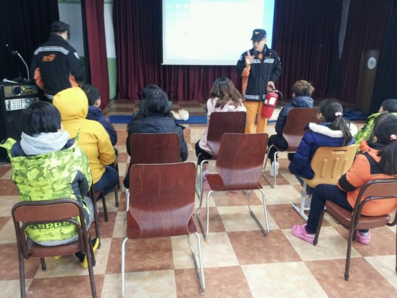 학생들은 명호소방서 소방관께서 보여준 어린이집 화재의 시청각 자료를 통해 화재 위험의 경각심을 높일 수 있었으며 정확한 소화기 사용법에 대해 교육을 받았다.
