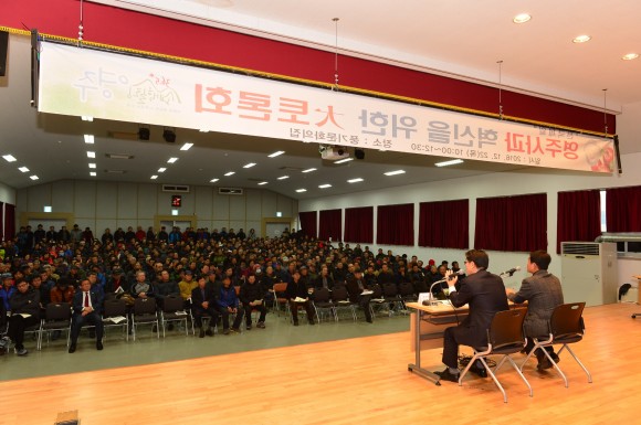 |  | | | ⓒ (주)영남도민일보 | | [영남도민일보] 김창기 기자 = 영주시(시장 장욱현)는 22일 풍기 문화의 집에서 과혁신지원단 및 300여명의 사과농업인이 참석한 가운데 민선 6기 시정방침인 희망 주는 부자농업실현을 위해 ‘영주사과 혁신을 위한 大토론회’를 개최했다.