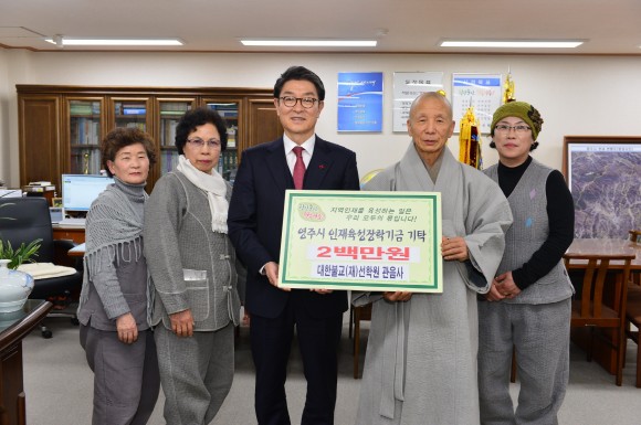 대한불교 (재)선학원 관음사 원명 주지스님은“우리 지역의 인재육성에 각별한 관심을 가지고 있으며 열심히 공부하는 학생들에게 조금이나마 도움이 되었으면 하는 바람에서 장학금을 기탁하게 되었다”고 밝혔다.