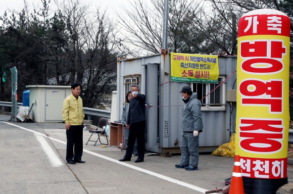 윤상기 군수‘AI 청정지역 지켜라’방역소 점검