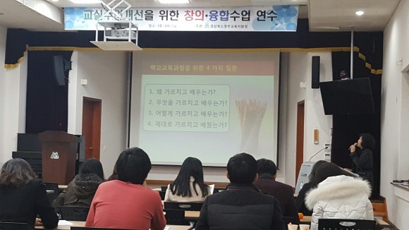|  | | | ⓒ (주)영남도민일보 | | [영남도민일보] 권기한 기자 = 영주교육지원청(교육장 신성순)은 12월 26일 영주교육지원청 대회의실에서 영주시 관내 초등교사 선생님들 26명을 대상으로 2017학년도 학생활동중심 교육과정 운영을 위한 토론 및 창의 융합 수업 연수회를 가졌다.
