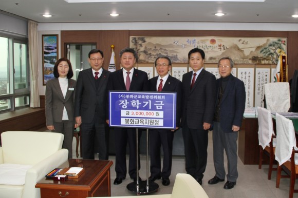 |  | | | ⓒ (주)영남도민일보 | | [영남도민일보] 권기한 기자 = 봉화교육지원청(교육장 김종길)은 지난 27일 봉화군청 군수실에서 사단법인 봉화군교육발전위원회에 교육발전을 위한 장학금 300만원을 전달했다. 이번 기탁금은 경상북도교육청에서 실시한 2016년 군 교육지원청 평가결과에 따른 봉화교육지원청 평가 시상금의 일부로 지역의 학생들이 더욱 학업에 매진해 지역 발전의 밑거름이 될 수 있도록 인재양성 및 교육발전에 힘을 보태기 위해 전달되었다.