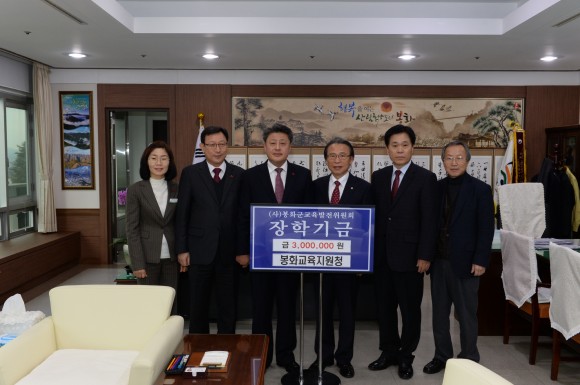 |  | | | ⓒ (주)영남도민일보 | | [영남도민일보] 고기훈 기자 = 봉화교육지원청은 지난 27일 봉화군청을 방문하여 (사)봉화군교육발전위원회(이사장 박노욱)에 장학금 3백만원을 전달했다.