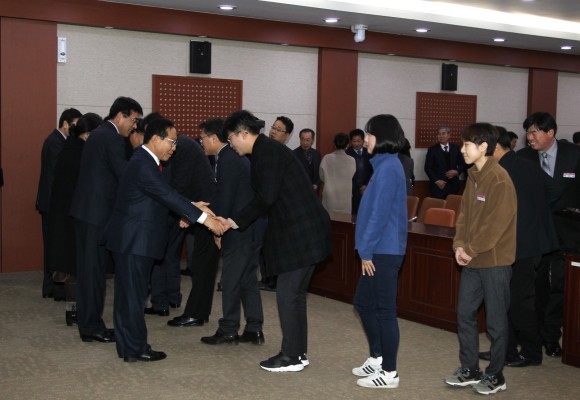 이날 시무식에서는 국가통계·사회발전기여 유공, 의료급여 사례관리·지방재정개혁 우수기관 표창 등 14 건의 지난해 업무추진 유공기관 표창장과 상장 전수, 신년사, 직원상호간 신년인사를 진행했다.