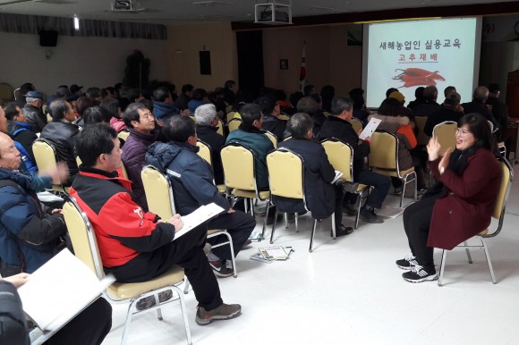 지난해 12월 12일부터 실시하고 있는 2017년 새해농업인실용교육 20회중 수화통역서비스를 하는 영농기술교육은 청각장애인이 참여하는 ▲1월 10일 고추반 교육, ▲1월 12일 생강반 교육, ▲1월 16일 사과반 교육에 수화통역사를 배치해 영농기술교육을 진행하고 있다.