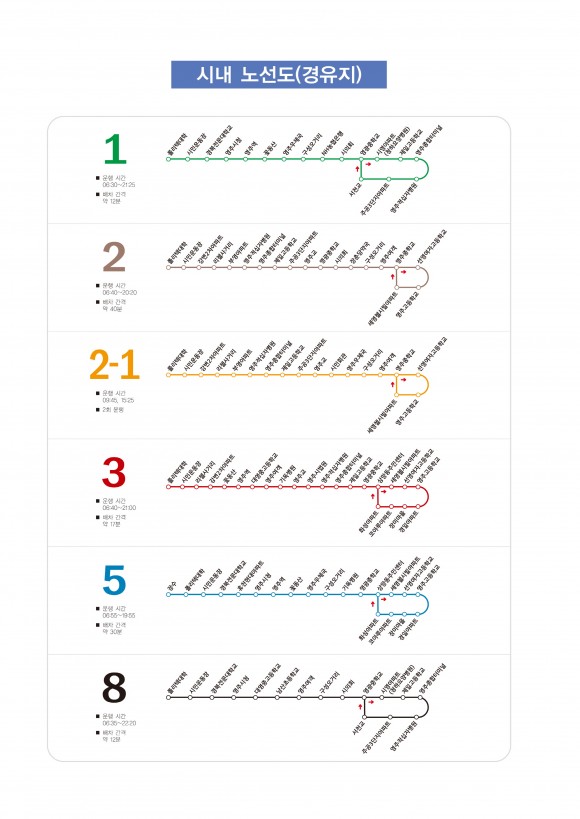 이번 버스노선 개편은 시내·외 버스 연계수송망 확충으로 우리시를 방문하는 관광객과 시민들의 편의 제공과 통학·출퇴근 시간 이용 편의 증진, 농촌지역의 고령화된 어르신들의 이동 불편 해소, 그리고 대중교통 소외지역 버스 이용 편의 제공에 초점을 맞췄다.
