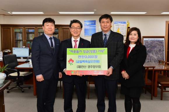 진현식 향우회장은 "비록 몸은 고향을 떠나 있지만 영주를 생각하는 마음은 여느 향우회 못지않다"면서 "고향 영주의 저소득 주민들에게 따뜻한 연탄불 같은 사랑의 마음을 전하고자 전달하게 됐다"고 기탁 배경을 밝혔다.