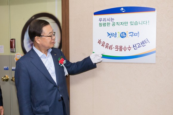 한편, 구미시는 지난 1월 13일 시청 4층 대강당에서 간부공무원에서부터 신규직원에 이르는 전 직원이 모여 청렴하고 공정한 공직문화 조성을 위한 공직자 자정운동 실천결의대회를 통해 오로지 낮은 자세로 오직 하나의 마음으로 모든 것을 쏟아 붓는다는 「국궁진력(鞠躬盡力)」의 자세로 시민들을 존경하고 시정을 위해 최선을 다할 것을 결의했다.