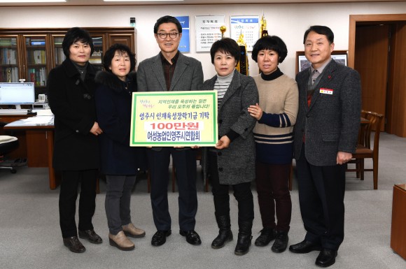 |  | | | ⓒ (주)영남도민일보 | | [영남도민일보] 김창기 기자 = 영주시는 지난 31일 한국여성농업인영주시연합회(회장 장진순)가 회원들의 뜻을 모아 마련한 100만원을 영주시 인재육성장학금으로 기탁했다고 2일 밝혔다.