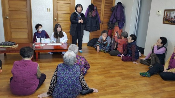 평소에 하던 의치세척법이 잘못된 점을 바르게 배우고, 주1회 의치소독을 통해 깨끗하고 건강한 의치를 사용하게 되었다고 즐거워하시면서 배움에 대한 만족함을 이야기 나누면서 추운 한파를 녹이고 있다.
