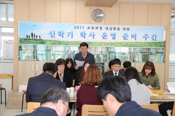 먼저 전입해 오신 교직원 소개와 신학기 업무 분장 및 담임 발표가 이루어졌으며 2017 교육계획 수립을 위한 협의를 하였다.