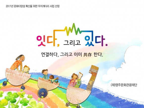 2017 문화다양성 확산을 위한 무지개다리 사업(잇다, 그리고 있다 : 연결하다, 그리고 이미 共存한다/3년이상 계속사업/국비 90% 지원)은 결혼이주 여성 및 자녀, 외국인 근로자, 귀농귀촌인, 학교밖 청소년, 노인 등 6200여명(지역인구 5.6% 정도)에 이르는 지역 내 문화소수자에 대해 문화프로그램을 지원하는 사업이다.