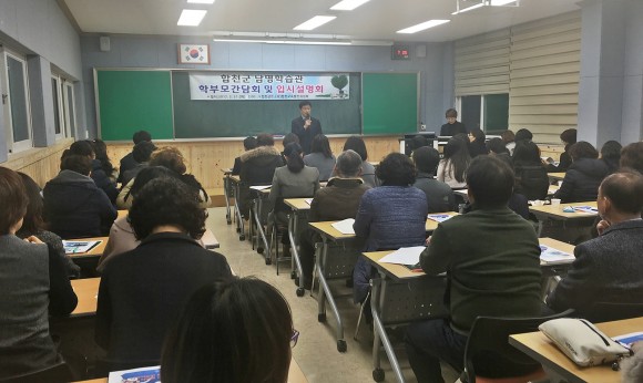 남명학습관은 학생 관리에 있어 학교와 상호보완 관계를 구축하고자 하며, 학생들이 학업에 전념할 수 있도록 수업시간을 학교 방과 후 시간 이후로 변경하는 등 조정을 하였다. 이어서 진행된 대성학원의 유창원 입시전략팀장의 입시설명회에서는 학부모들의 자녀 진학에 대한 관심을 반영하는 듯 깊은 관심과 호응 속에 진행 되었다.