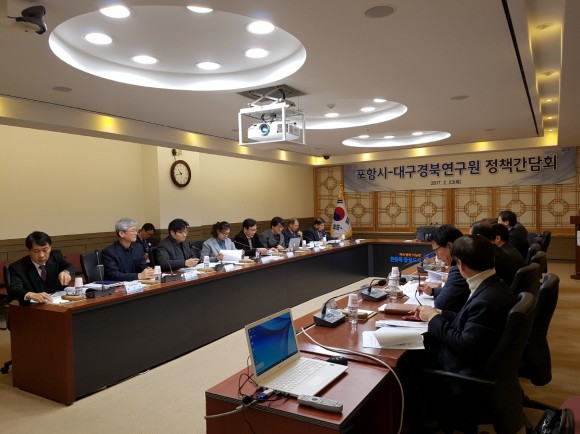 |  | | | ⓒ (주)영남도민일보 | | [영남도민일보] 정문용 기자 = 포항시가 23일 시청 중회의실에서 「포항시-대구경북연구원정책간담회」를 개최했다.