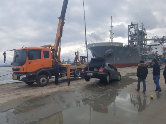 포항해경 구조대는 사고 해점에서 수중 수색을 벌여 검은색 그랜저 차량을 발견하였으며 차량 내부에 더 이상 사람이 없는 것을 확인한 후 11시 25분경 카크레인을 이용하여 차량을 인양 완료하였다고 전했다.