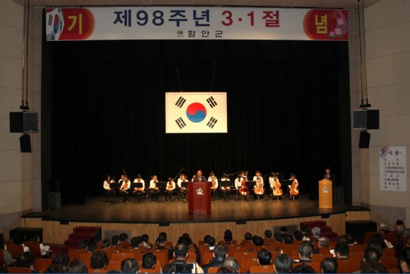 참석자들은 청소년 오케스트라의 반주에 맞춰 함안여성합창단과 함께 3·1절 노래를 제창하고, 이병찬 노인회장의 선창으로 만세삼창을 외치며 기념식을 마무리 지었다.