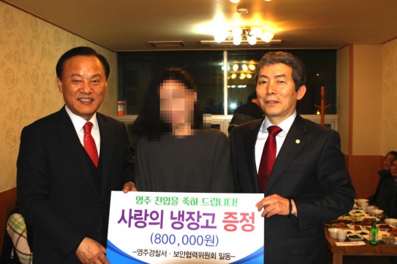 이번 보안협력위원회(위원장 백현우) 에서는 최근 하나원을 졸업한 여성 탈북민 2명에 대하여 가정 필수품인 『사랑의 냉장고』 증정식을 개최 하며 영주 지역에 전입하게 된 것을 축하 하며, 하루 빨리 지역사회에서 당당한 시민의 한 사람으로 정착 해줄 것을 기원 하였다
