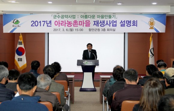 |  | | | ⓒ (주)영남도민일보 | | [영남도민일보] 김진규 기자 = 함안군(군수 차정섭)은 지난 6일 오후 3시, 군청 3층 회의실에서 김종화 부군수를 비롯해 20개 사업대상마을 추진위원장, 읍·면담당자 등 60여명이 참석한 가운데 ‘아라농촌마을 재생사업 설명회’를 개최했다.