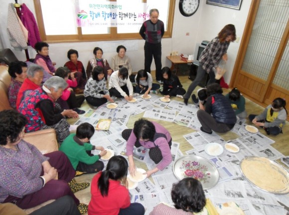 |  | | | ⓒ (주)영남도민일보 | | [영남도민일보] 김병한 기자 = 거창군 위천면(면장 강국희)은 지역사회보장협의체 특화사업으로 ‘할매·할배와 함께하는 사랑방 운영’을 추진한다. 그 일환으로 지난 8일 장기마을 경로당에서 어르신과 지역아동센터 아동 30여명이 참여한 가운데, 떡만들기(인절미)와 윷놀이를 함께 하는 시간을 가졌다.