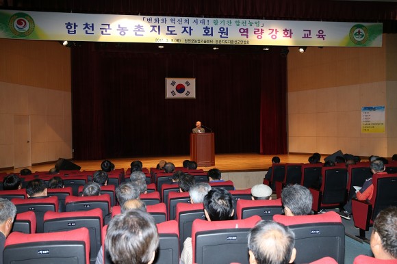 농업ㆍ농촌의 핵심 주역인 농촌지도자 역량을 강화하고자 한국농촌지도자 중앙연합회 강정현 정책연구실장을 초빙 ‘변화와 혁신의 시대 농촌지도자의 대응전략 과제’라는 주제로 농촌지도자의 리더십 향상과 자긍심 고취를 위한 강의가 진행됐다. 이어 하창환 합천군수께서는 인사말을 통해 ‘누구나 살고 싶어 하는 행복한 합천농업’을 만들기 위한 비전 제시와 함께, 꾸준한 자기계발과 역량을 강화하여 어려운 농촌 현실을 극복해 나가는데 농촌지도자의 역할을 다해야 함을 강조했다. 공윤덕 회장은 “격년제로 한해는 한마음대회, 한해는 회원역량 교육으로 조직 활성화를 도모하여 급변하는 농업환경에 능동적으로 대처하고, 지역 농업 선도자로서 농업·농촌의 발전에 앞장 설 것이다.”라고 밝혔다.