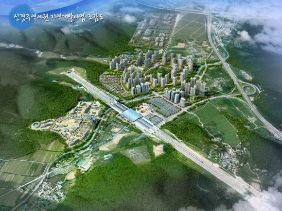 한편 신경주역세권개발사업은 신경주 역사 앞쪽 53만7천㎡(약 17만평)를 미래지향형 자급자족 부도심으로 신도시를 개발한다는 야심찬 목표로 진행되고 있다.