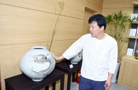 “이 작품은 전통 장작 가마로 빗은 철화용문 달 항아리입니다. 예로부터 용이 그려진 달 항아리가 집안에 있으면 액운이 사라진다고 하였습니다. 금년 문경 찻사발 축제가 전국에 널리 홍보되어 많은 분들이 축제장에 오셨으면 하는 마음입니다.” 영남요 우남 김경식 작가의 작품에 대한 설명이다.