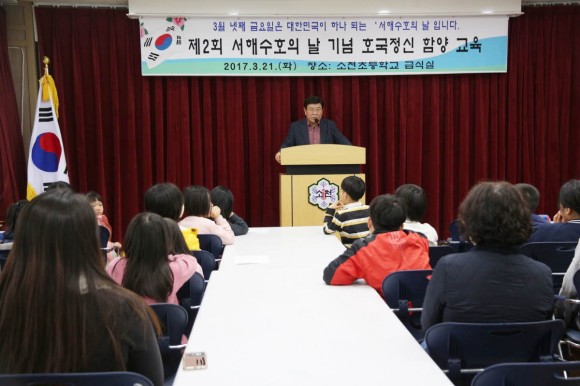 본교 이하석 교장은 기념사를 통해 “오늘 호국정신함양을 위한 계기교육을 통해 우리 소천의 어린이들도 국가 안보의 소중함을 되새기고, 온 국민이 하나 된 마음으로 국가 안보에 힘을 모아야한다고 .”고 강조했다.