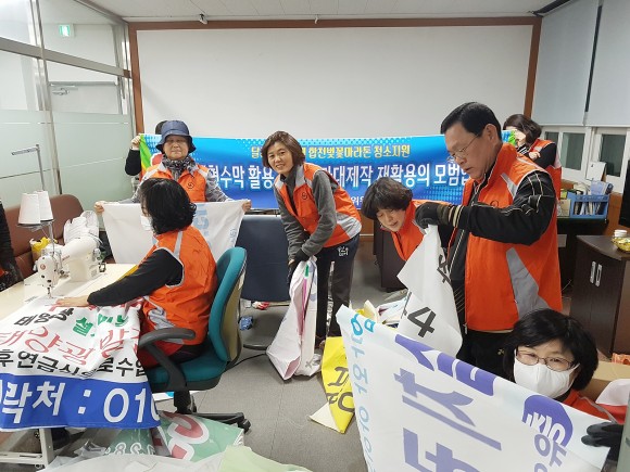폐현수막으로 청소용 마대제작 배부