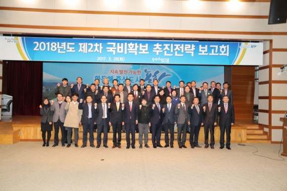 이강덕 시장의 주재로 열린 이날 보고회는 지난 2월에 열린 1차 보고회에 이어 정부의 정책방향에 맞춘 민선6기 시정 주요 시책과 연계할 신규·핵심사업 발굴 및 예산확보를 위한 선제조치로, 2018년 국비확보 대상사업에 대한 설명과 기관 간 협력 방안을 포함해 네트워크를 활용한 전 방위적 전략 모색과 체계적인 시스템 마련 등 한발 앞선 대응 방안들이 집중 논의됐다.