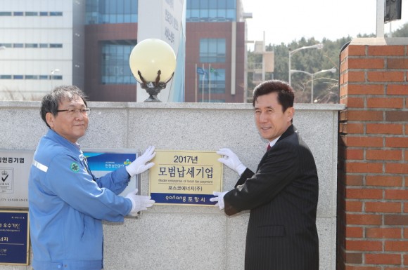 이강덕 포항시장은 “우리 지역 기업이 정직한 노력으로 낸 세금이 다시 기업과 사회에 유익한 쓰임으로 돌아갈 수 있도록 일자리 창출, 기업지원, 사각지대 없는 복지지원을 위해 힘쓰고 있다”며 “어려운 시기지만 재생·대체에너지산업 연구개발에 힘쓰는 여러분의 노고가 미래산업을 선도해나가는 세계 최고의 포스코에너지로 우뚝 서는 밑거름 될 것”이라고 응원의 말을 전했다.