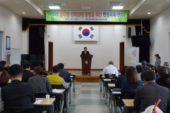 |  | | | ⓒ (주)영남도민일보 | | [영남도민일보] 권기한 기자 = 영주교육지원청(교육장 신성순) 2017.4.4.(화) 영주교육지원청 대회의실에서 관내 초․중학교의 인성교육 담당자 60여명을 대상으로 2017학년도 영주교육 특색사업인 인성(선비)교육 연수를 실시하였다.