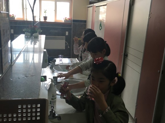 이날 점심시간에는 식사를 마친 학생들이 화장실에서 담임 선생님과 같이 양치질을 하면서 올바른 칫솔질 방법에 대한 설명을 들었다. 본교 신준수(6학년) 학생은 “양치질을 열심히 해서 올해에는 건치아동으로 뽑히고 싶다.” 라고 말했다.