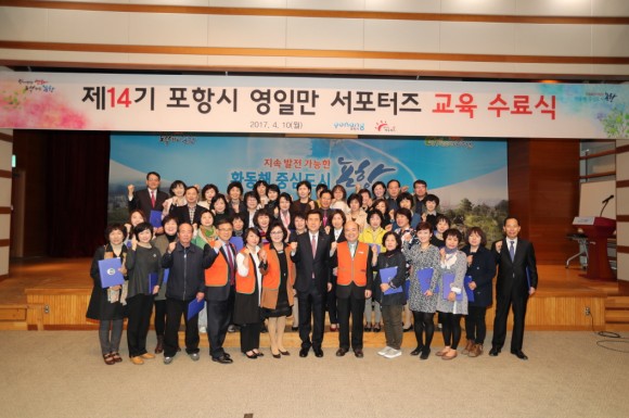 |  | | | ⓒ (주)영남도민일보 | | [영남도민일보] 정문용 기자 = 포항시는 지난 10일 시청 대회의실에서 수료생과 기존회원 등 100여명이 참석한 가운데 ‘제14기 포항시 영일만 서포터즈 교육수료식’을 가졌다.