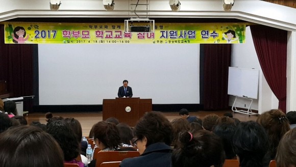 |  | | | ⓒ (주)영남도민일보 | | [영남도민일보] 권기한 기자 = 경상북도교육청(교육감 이영우)은 4월 18일 경상북도교육연수원 대강당에서 2017학년도『학부모 학교교육 참여지원 사업』공모에서 선정된 도내 초, 중, 고, 특수학교 221개교 학부모회 대표, 교감, 교육지원청 업무담당자 460여명을 대상으로 학부모 학교교육 참여지원 사업 연수회를 실시했다.