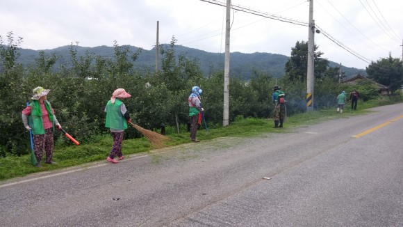 회원들은 주민들의 통행불편 해소와 여름 휴가철 관광객들에게 쾌적한 환경을 제공하기 위하여 바쁜 농번기철임에도 불구하고 이른 새벽부터 무성하게 자라난 도로변의 잡초 및 잡목을 깨끗하게 제거하고 주변에 버려져 있던 쓰레기를 수거하였다.