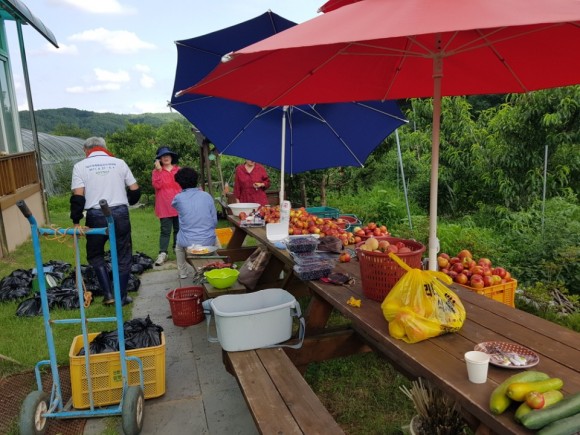 이번 복숭아 구매는 우박피해를 입은 권정무 농가의 딱한 사정을 접한 읍사무소 직원들의 자발적인 참여로 이루어졌으며, 30개 한 상자 1만원의 복숭아 23상자가 판매되었다.