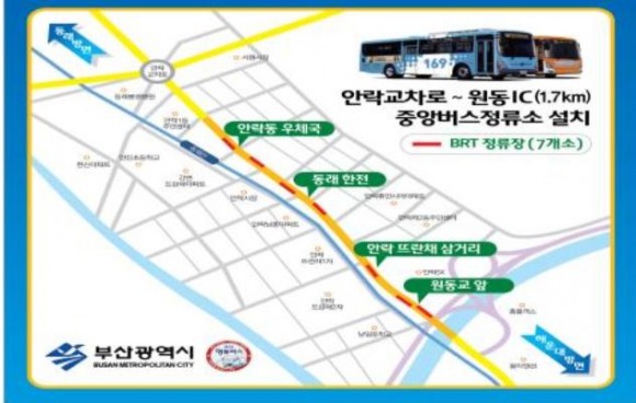 한편 부산시는 올해 4월 24일 04시부터 안락교차로에서 원동 IC까지 1.7km 구간에 버스정류장 7개소를 설치하고 중앙버스전용차로를 개통한 바 있다.