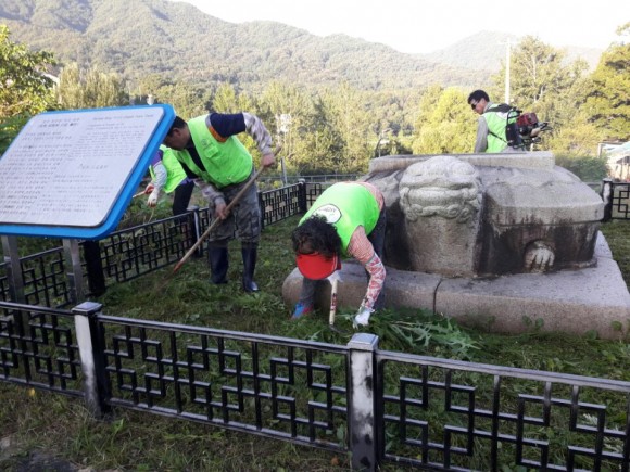 |  | | | ⓒ (주)영남도민일보 | | [영남도민일보] 김옥순 기자 = 동성동자연보호협의회(회장 최성현)에서는 8월 8일 관내에 소재한 도지정문화재인 무양동 석조귀부 주변의 쓰레기 수거 및 제초작업, 문화재 안내판 등을 청소하는 환경정비를 실시하였다.