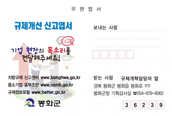 봉화군, 규제개선 신고엽서 제작 배부