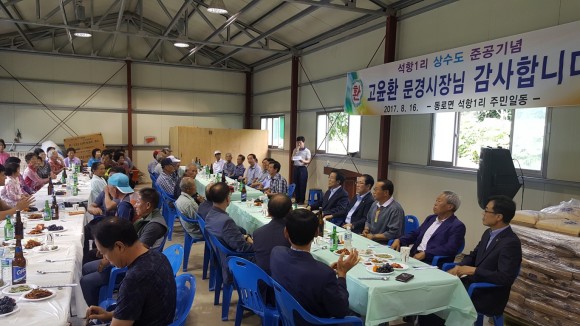 심상용 석항1리 이장은 "석항1리는 수원이 절대적으로 부족한 곳이어서 주민들이 생활하기가 많이 불편했는데, 34세대 60여명이 이제 급수난에서 벗어날 수 있게 되어 무척 기쁘고, 우리 동네에 2차선 도로가 나서 버스가 들어온 후 두 번째로 기쁜날" 이라며 진심으로 마음에서 우러난 고마운 마음을 전했다.