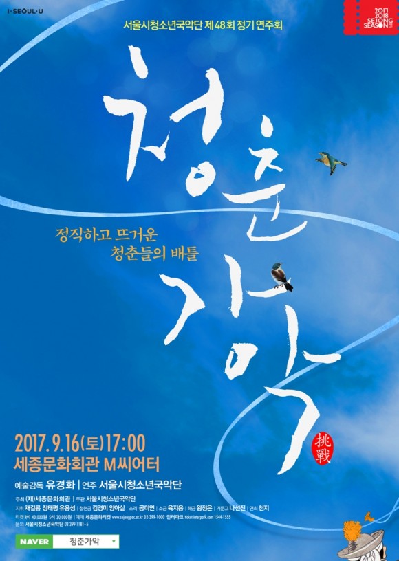「세종 체임버시리즈 피아노로 써내려간 편지」는 실내악이 완성되는 아름다운 공간, 세종문화회관 체임버홀에서 김정원 피아니시트와 첼리스트 Li-wei Qin과 함께 듀오 연주를 선보인다. 「서울시청소년국악단 청춘가악」은 차세대 국악인 발굴을 위한 빅 프로젝트로 국악계의 새로운 주역으로 성장할 젊은 연주자들을 가장 빨리 만나볼 수 있는 무대이다.