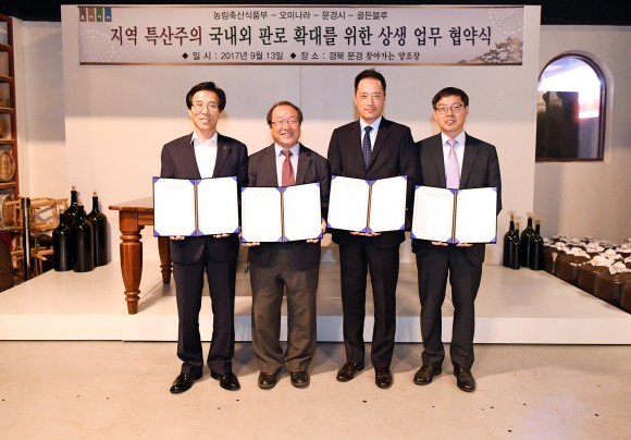 이번 업무협약은 문경 농특산물인 오미자와 사과의 판로를 확대하기 위하여 진행되었으며, 이번 협약 체결로 스파클링 와인인 오미로제와 사과 증류주인 문경바람이 골든블루의 유통망을 통해 전국으로 판매 될 예정이다.