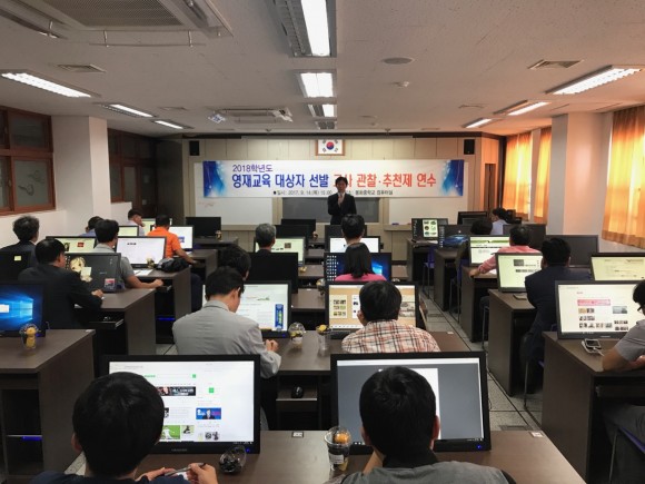 |  | | | ⓒ (주)영남도민일보 | | [영남도민일보] 고기훈 기자 = 봉화교육지원청(교육장 신영숙)은 14일 봉화중학교 컴퓨터실에서 관내 초․중학교 관리자 및 영재업무 담당교사 42명을 대상으로 2018학년도 영재교육대상자 선발을 위한 교사 관찰․추천제 연수를 실시했다.