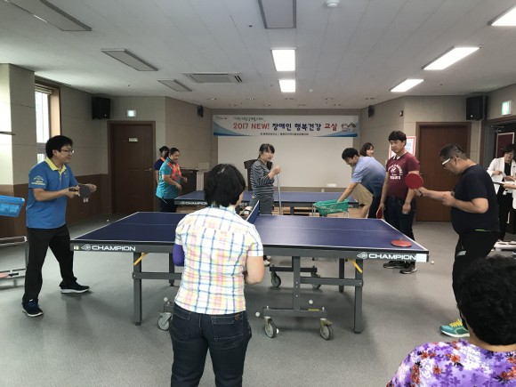 장애인의 건강증진을 위해 마련된 “행복건강교실”은 탁구교실, 요가교실, 영양교육, 웃음치료 등의 프로그램으로 운영되며, 장애인들에게 재활의지를 심어주고 사회참여기회를 제공하기 위해 주 2회씩 10주에 걸쳐 진행된다.