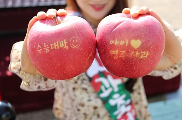 영주시사과발전연구회 관계자는 “글씨사과는 품이 많이 들고 생산과정이 번거롭긴 하지만 영주사과 홍보에는 최고다”며 “수험생의 합격 기원과 감사의 뜻을 전달하는 마음으로 글씨사과를 재배했다”고 말했다