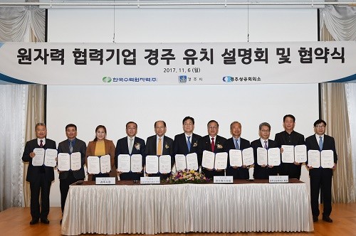협약체결 기업은 경주로 이전이 결정된 한수원 협력기업 9개사로, ㈜진성아이텍, ㈜케이티씨글로벌, ㈜수산인더스트리, 에이스기전㈜, 수산ENS㈜, ㈜오르비텍, ㈜웨스코일렉트로드, ㈜이에스다산, ㈜코네스코퍼레이션 등이다.