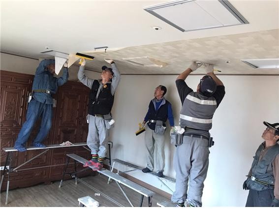교육장이라는 제한된 공간을 떠나 실무중심의 현장 교육을 고심하던 중 도배, 장판 시공이 필요한 노인장기요양기관의 수요와 맞물려 봉사활동으로 범위를 넓히게 되었다.